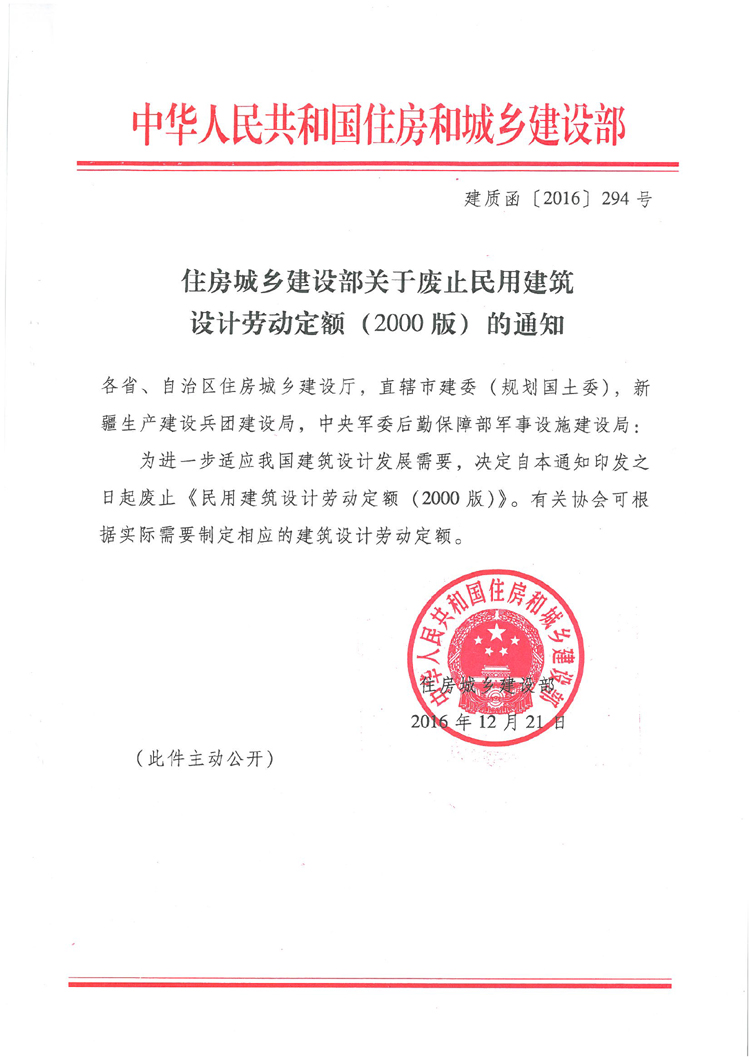 住房城乡建设部关于废止民用建筑设计劳动定额(2000版)的通知
