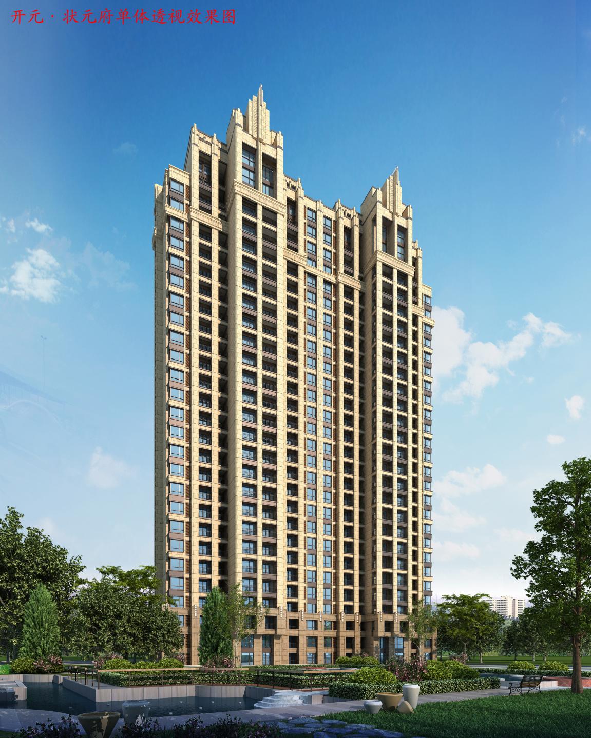 ,绿地率30%。开元状元府采用欧式风格为蓝本,融入中国现代元素。再欧洲风格的建造形态上的特点是:简洁、线条分明、讲究对称、运用色彩的明暗,鲜淡来对视觉进行冲击。使人感到壅容华贵、典雅、富有浪漫主义色彩。 由于欧式建筑的风格能够让人产生对传统一些东西的向往以及产生遐想的力量。引领都市人居潮流,我们发现开元状元府既具有传统建筑之美感,又融汇现代科技之灵性的建筑才更加具有吸引力。