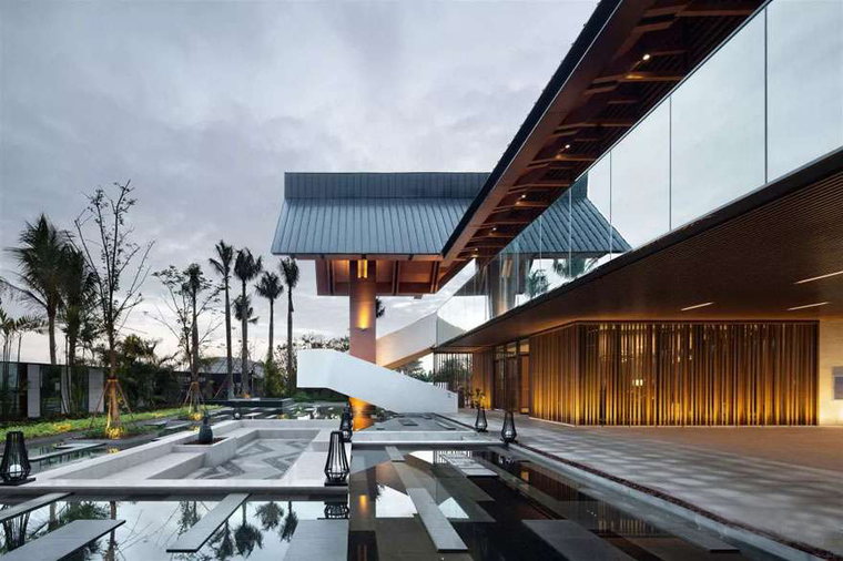 在设计中,我们往往需要同时照顾两个相反的原则,在控制的同时释放,在放下的时候提起,在前进的时候后退,在延续的同时打破。在当下大部分启动区气质趋向于统一的时候,如何通过传统文化和现代美学的结合,打造出“不堆叠符号、不单调重复”的建筑形式,将是一个被广泛讨论的命题。我们希望找到一种方式,在设计中真正能做到在大的同时小一点,在轻的同时重一点,在深的同时浅一点,在传统的同时现代一点,因为所有的元素都能最终找到一种方式共存,所有的探索本质上都是对下一波浪潮的可爱幻想。本项目位于海南省??谑?,作为该地块的展示中心及售楼中心,本案引领了整个地块的精神面貌。业主希望建筑兼顾功能与审美的需求,风格上体现当地建筑特色的同时,不失现代流行气质。由繁至简,探讨形体上的另一层境界;由简至繁,感悟与理解随之不断升华。完整表达设计的初衷,需要靠所有人不懈的努力和互相理解,在此由衷感谢业主从项目之初到建筑落笔以来对我们的信任,和不遗余力的支持。